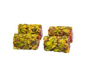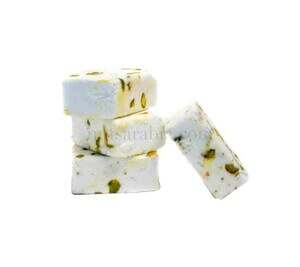 White nougat with chopped nuts filling and topped with a layer of Lebanese dried flower petals.